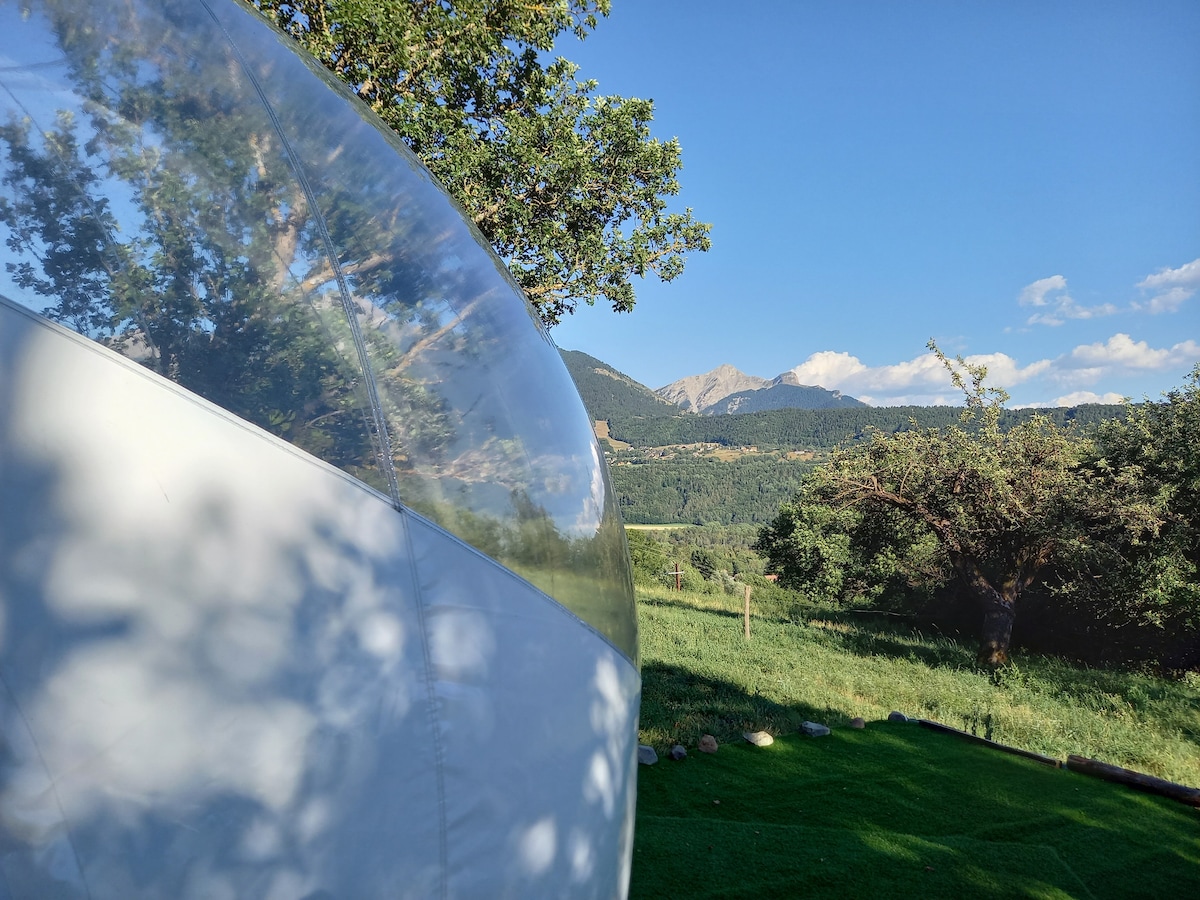 Laissez-vous porter par cette expérience hors du commun, au coeur de la Vallée du Champsaur dans les Hautes-Alpes (05). Vivez une nuit à la "bulle étoile", immergés dans la campagne avec vue imprenable sur les montagnes. Contemplez le ciel et laissez vous bercer par les bruits ressourçants de la nature environnante. Relaxez-vous dans le Spa privatif. Salon et sanitaires dans une dépendance de la propriété pour un confort optimum. Cour extérieure privative.