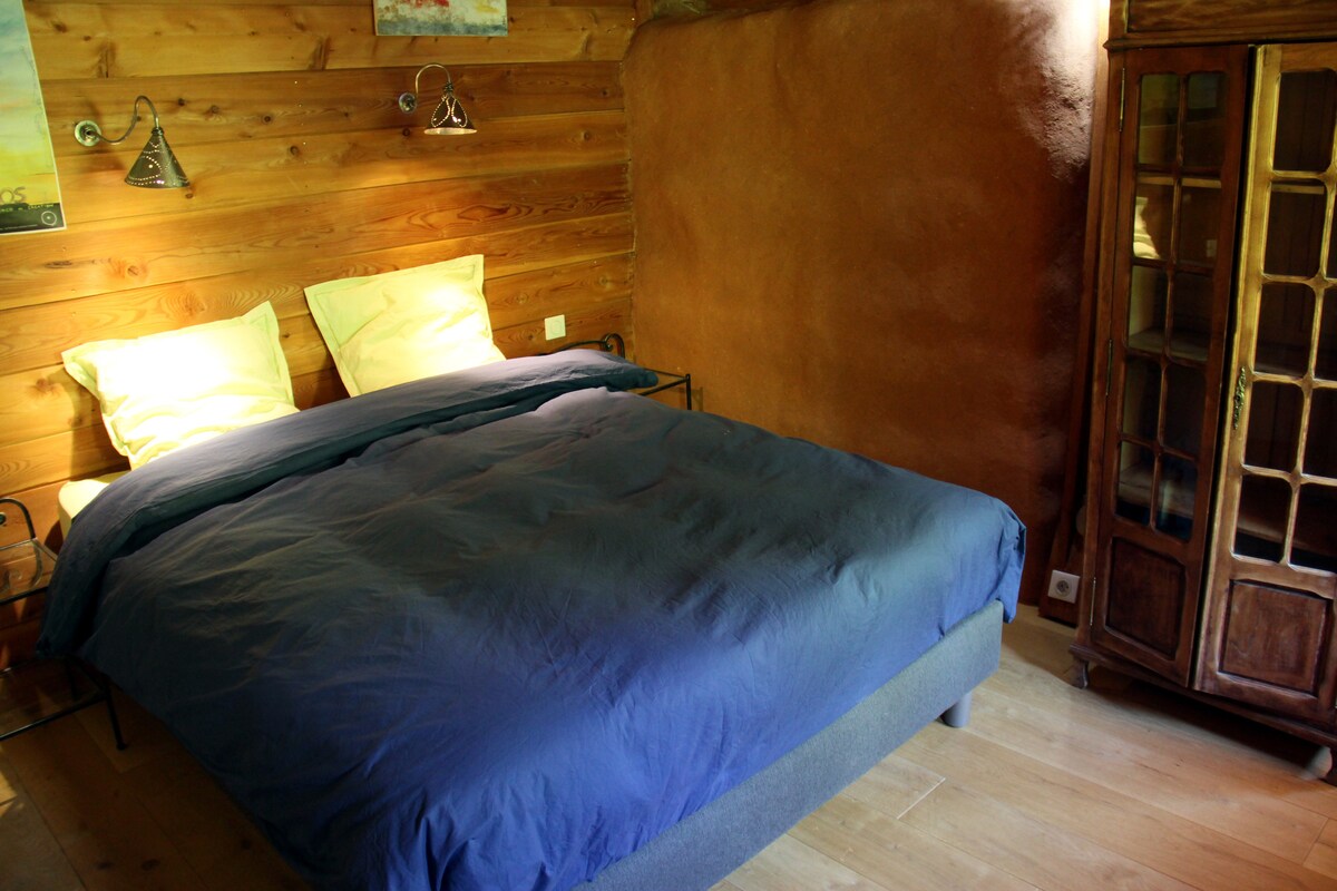 La Paille是一棟充滿活力的自給自足的房子,採用環保材料建造,位於大自然中,面向山脈。 房間可容納2人,配有一張加大雙人牀。 您可以使用兩間共用浴室和設備齊全的廚房來準備餐點。 早餐包含新鮮、有機和當地農產品。
