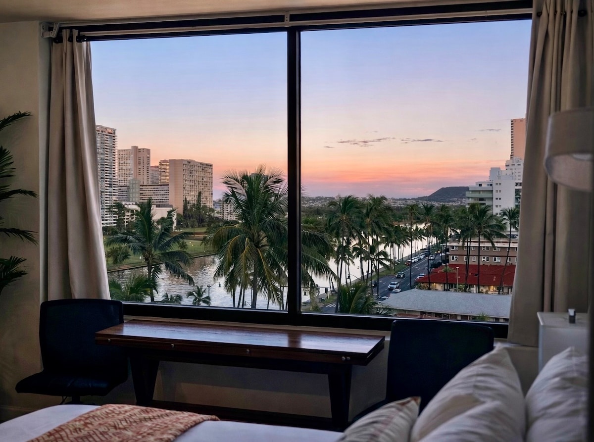 威基基單間公寓,全景景觀,步行即可抵達海灘!