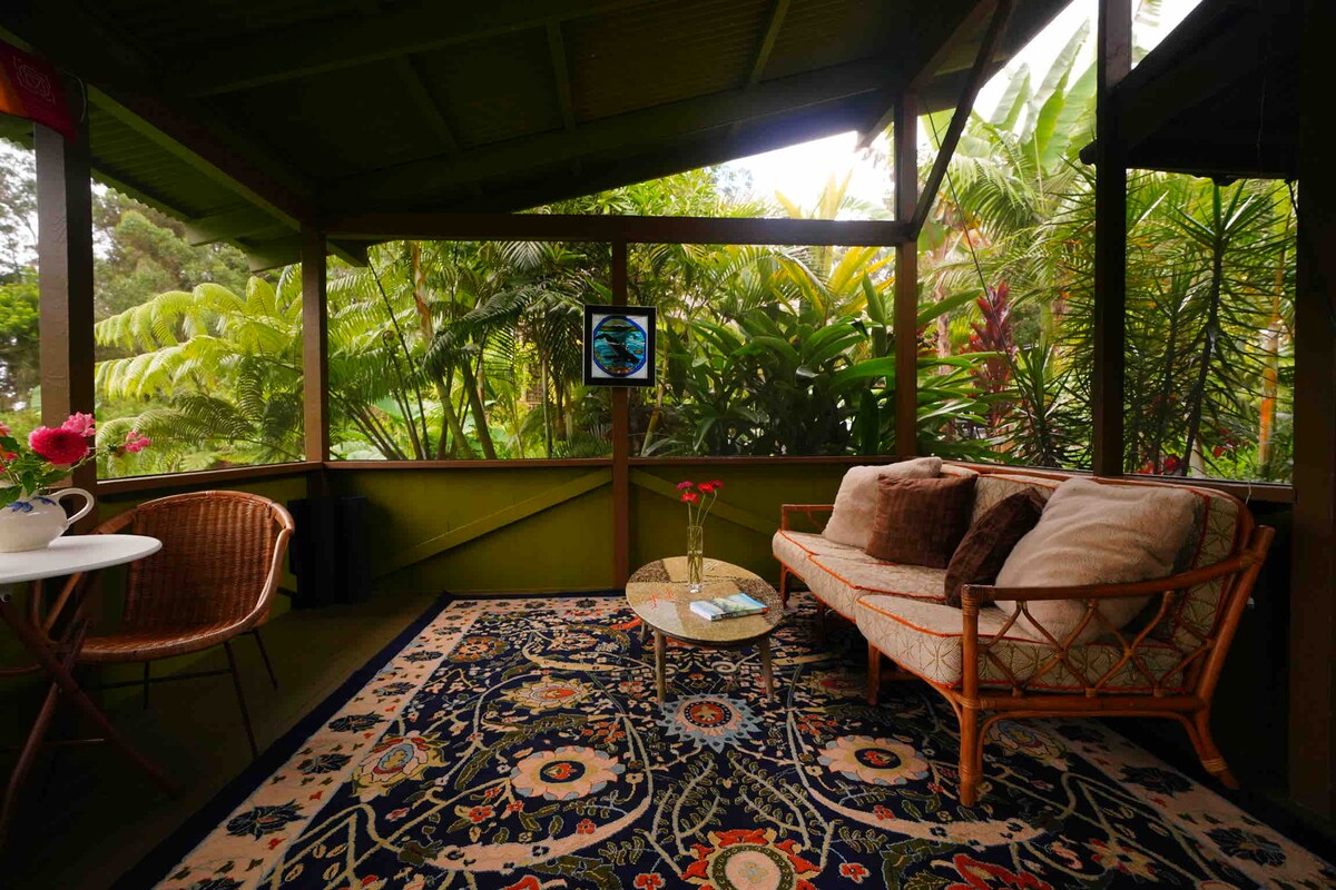 這間迷人獨一無二的房間隱藏在夏威夷火山國家公園( Hawaii Volcanoes National Park )美麗的雨林中。 這間安靜的房間配有獨立入口,配有一張1.8米寬雙人牀、配有微波爐/咖啡機/迷你冰箱的濕吧、創意、帶淋浴的手工獨立浴室。