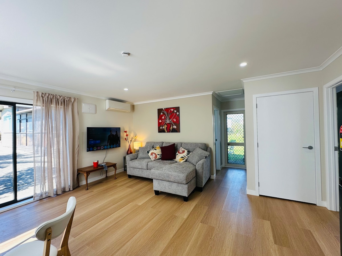 我們提供與房源相連的設備精良的獨立單間公寓。 私人空調空間,可自助入住。 免費路邊停車。 霍克斯灣住宿的絕佳基地。 獨立臥室配有一張1.8公尺寬雙人牀。 您有帶小廚房的休息室、大浴室和獨立廁所。 洗衣機。有一個陽光充足的私人庭院,配有戶外傢俱、雨傘和瓦斯燒烤,在探索我們美麗的地區後放鬆身心