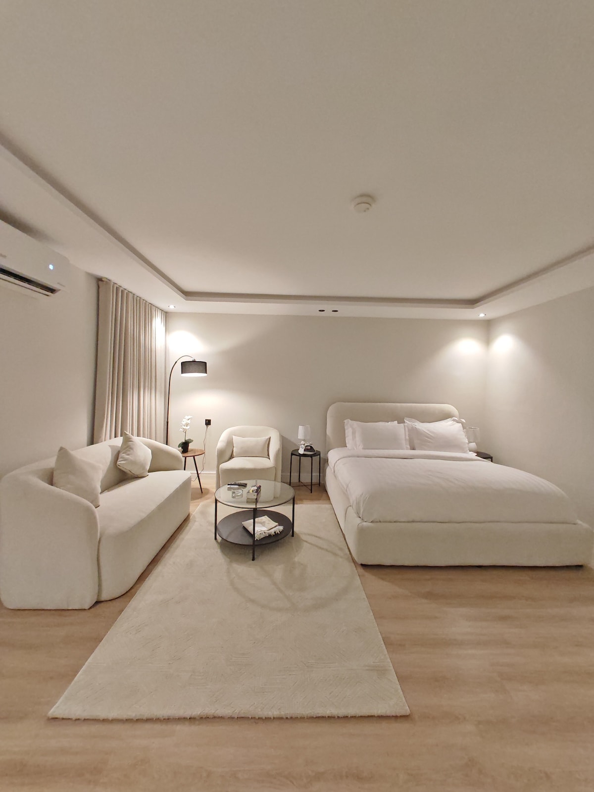 打開門……放開心情:從準備咖啡角的第一口,在優雅的桌子上快速任務,晚上65英寸的螢幕將會議變成私人表演-這是一間現代化的工作室,在Al Murooj街區充滿沙烏地風情,距離北利雅得的餐廳和服務僅一步之遙。 體驗的脈動 • 燈光和冷色調營造出即時放鬆的時刻。 • 咖啡角為旅居增添晨間香氣,營造愉快的心情。 • 65英寸大螢幕上的有趣家庭影院。 • 這個地點集結了Al Murooj和北利雅德的所有重要景點。