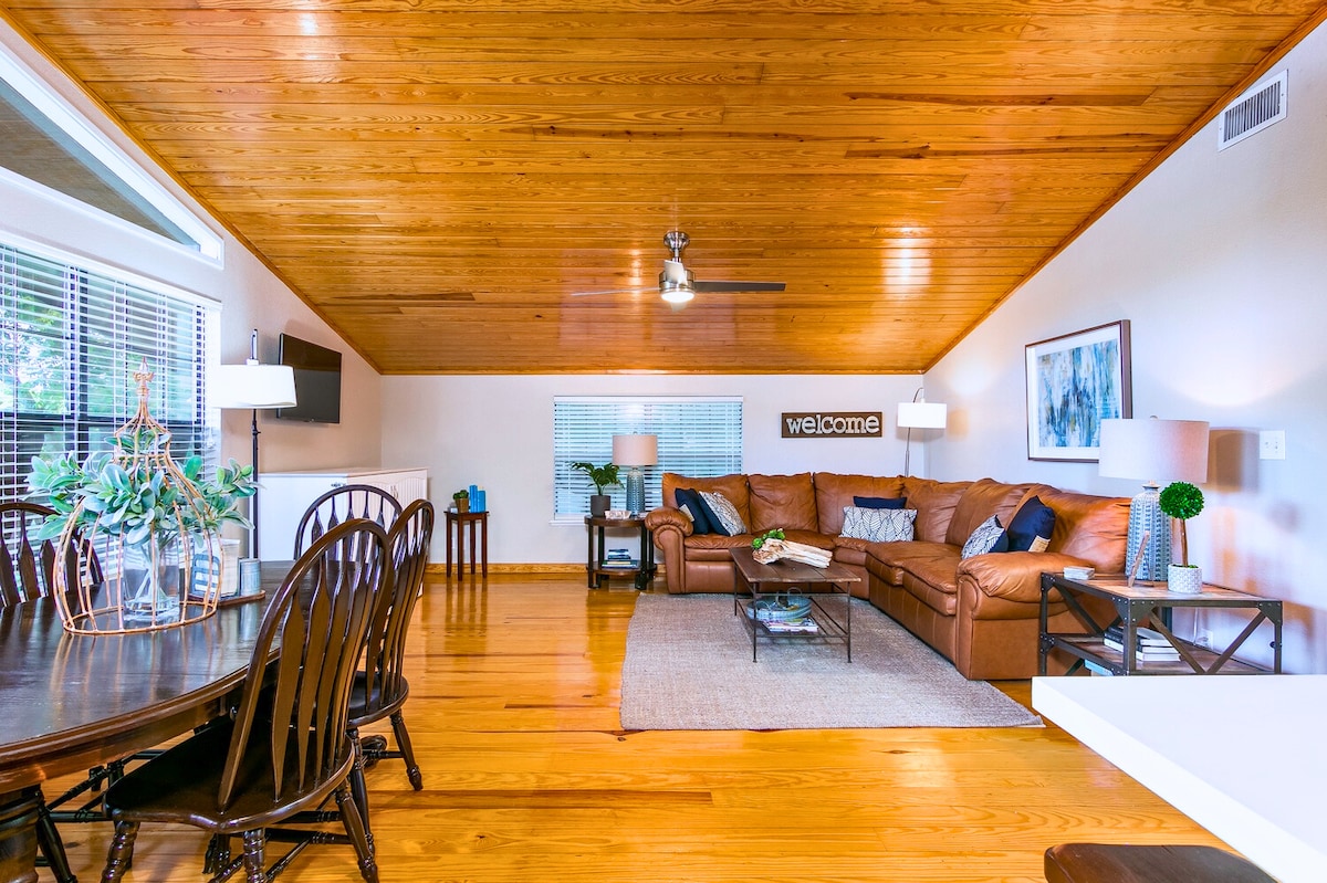 獨立於我們的主屋,逃到這間私人單間公寓。 Lady Bird Lake徒步和單車道就在外面,你可以使用我們的單車、桨板和皮艇。 打開遮光的細節遮陽簾,感受懸掛在樹上,觀賞僧侶鸚鵡和許多其他鳥類。 這間單間公寓充分利用了我們2輛車車庫上方的空間,配有優雅的浴室、有機牀墊和肉磚檯面。 2G Google光纖WiFi 適合3或4人入住。