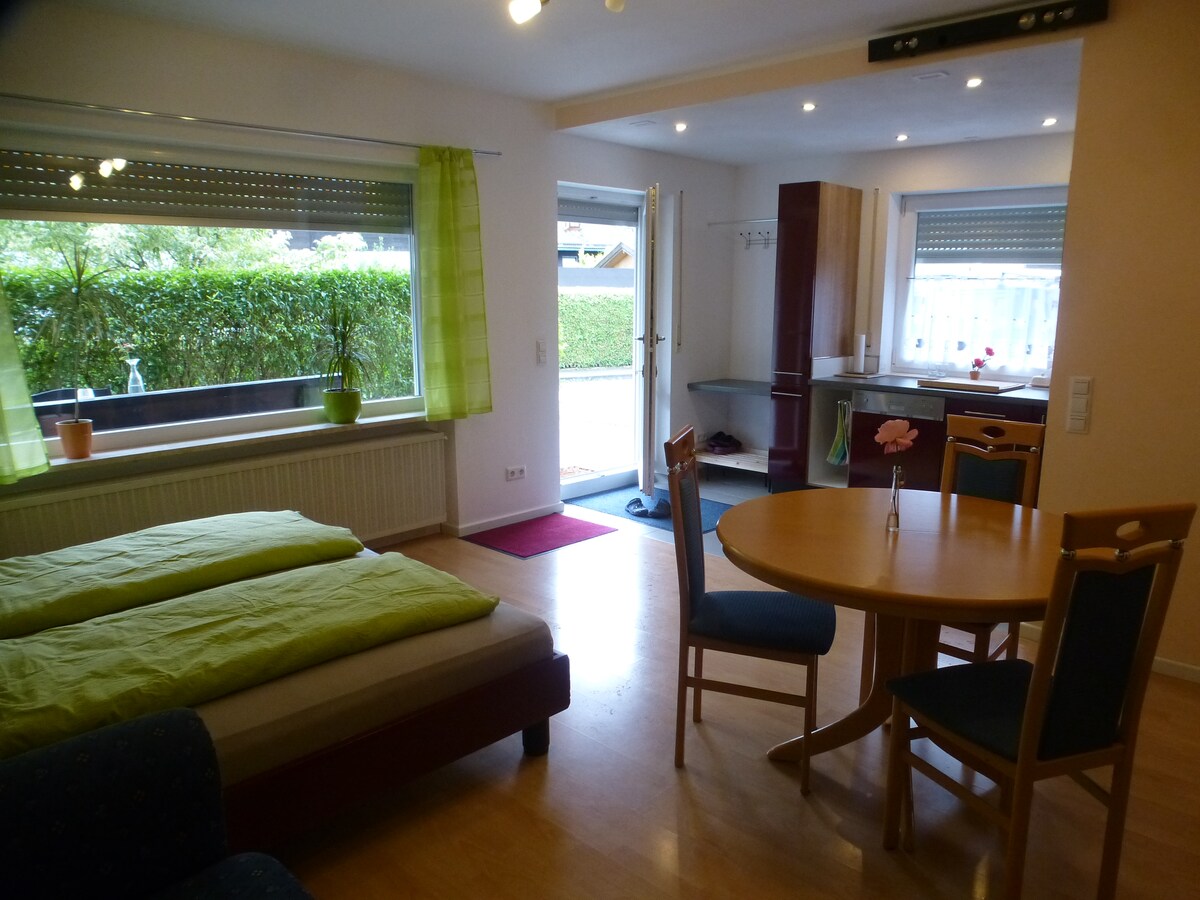 我們的公寓非常明亮、恬靜且安靜,位於我們房屋的一樓,可直接通往您的露臺和花園。全新的公寓配備了現代鄉村風格的家具,設備非常齊全。弗拉斯多夫 (Frasdorf) 位於基姆高山腳下,坐落在阿爾卑斯山麓的緩坡上。距離基姆湖 (Chiemsee) 和西姆斯湖 (Simssee) 僅 8 公里。位於慕尼黑和薩爾茨堡之間,遠離繁忙和壓力,四季皆宜。