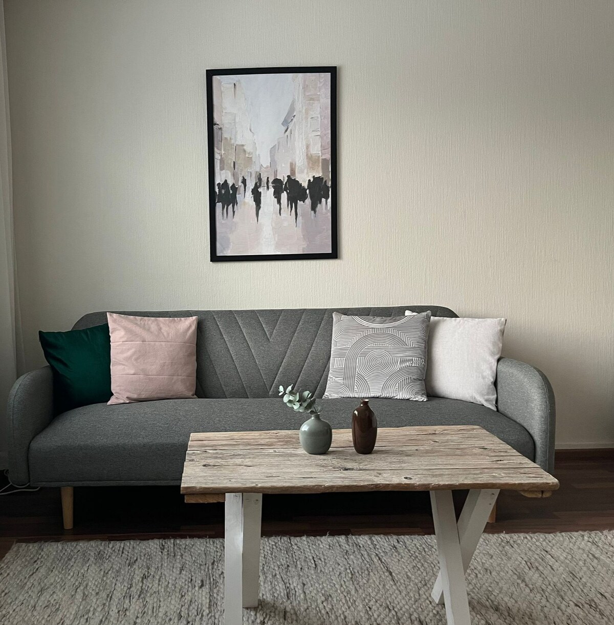 公寓是一個舒適明亮的單身公寓,距離市中心步行不到10分鐘。公寓配有新的舒適床和可展開的沙發床。廚房雖然小巧,但設備非常齊全,因此公寓也適合長期住宿。冬季游泳愛好者可以在100米外的游泳區域游泳,海灘還有很多漂亮的戶外路線。房子的院子或隔壁街道有免費停車位。房子前面有巴士站。