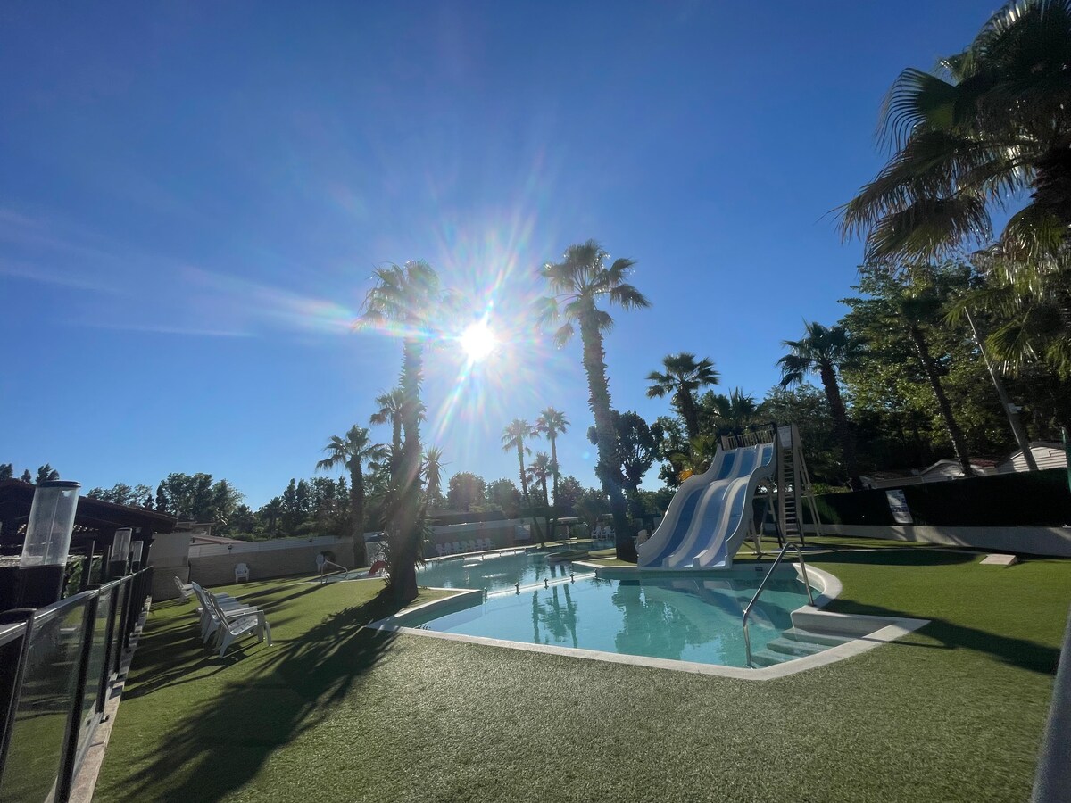 Bonjour, mobile home 6 places dans camping 4 étoiles Les Sablines à Vendres-plage(34) Piscine Restaurant Accès plage 800m…