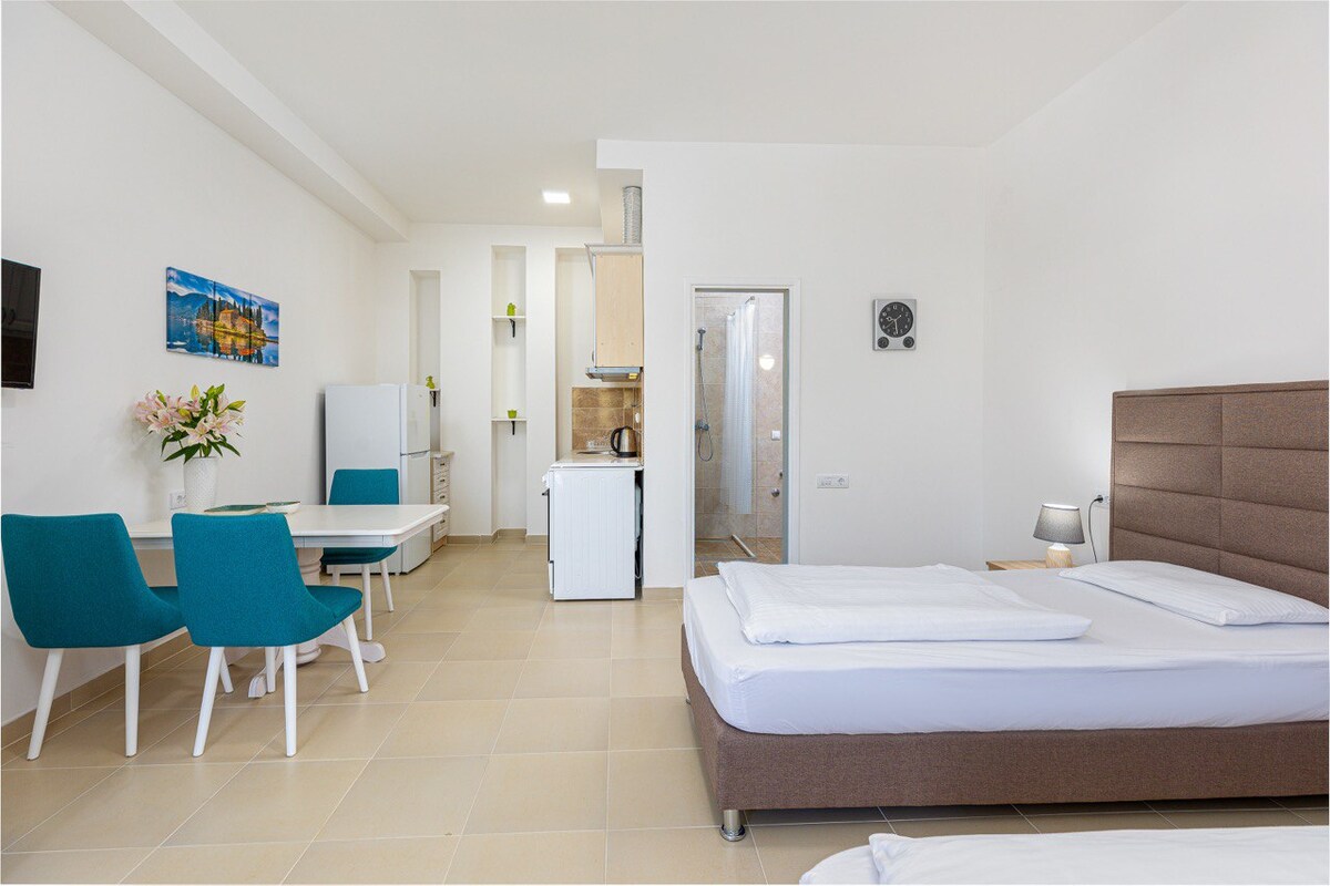 Welcome to Kotor Bay View – Apartments Stay in a charming stone house nestled in the hills of Bijela with breathtaking views of the Bay of Kotor. Enjoy cozy, modern apartments, and a peaceful place with breathtaking terrace views. Just 10 minutes walk from the beach (750m), it’s the perfect mix of nature, comfort, and Montenegrin charm