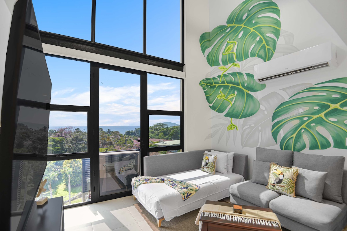位於Jaco市中心的最佳位置。 在2024年建造的海濱單間公寓中,從您的超大雙人床上欣賞海景,距離主要的Jaco街區1個街區。 步行即可抵達任何地方!這間完整的私人浪漫單間公寓位於8樓,有自己的入口門,有自己的私密陽臺,可欣賞海景、山景和城市景觀。 安全門、2個泳池、健身房、共同工作區域、燒烤區域和令人驚嘆的第13層頂樓日落甲板,可欣賞360度景觀。Pura vida!