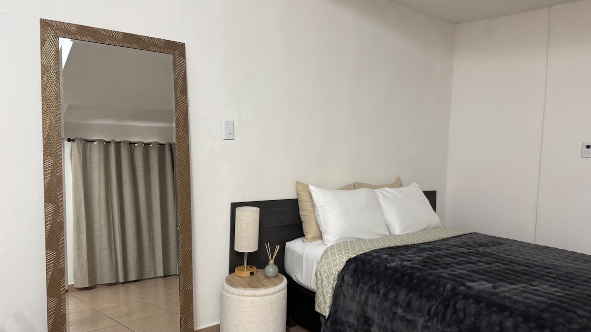 位於安靜中心街區的私人公寓、整個廚房、扶手椅、雙人牀、可收看Netflix的智慧電視、Wi-Fi。 位於中央殖民地,靠近索諾拉大學、酒吧、俱樂部、市中心,開車15分鐘即可抵達機場。 非常適合情侶、旅客、家庭旅行或商務差旅。-我們會說英語-