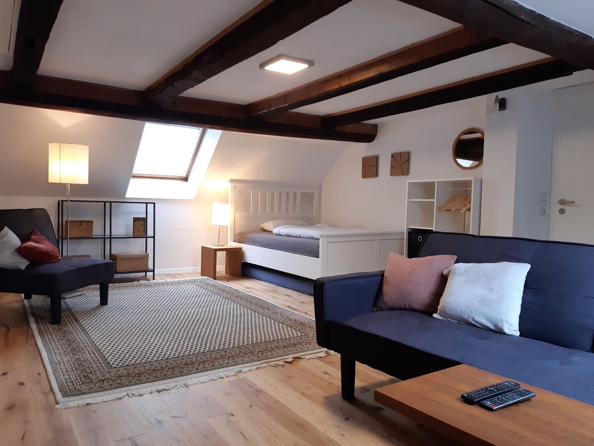 這間公寓位於富爾達河畔一棟古老的半木結構房屋的閣樓上,經過精心翻新。 該公寓於 2021 年全面翻新,並配備了高品質的設備。全新的浴室、全新的高品質且設備齊全的廚房、客廳鋪設的實木地板、高品質的床墊…… 從房源可俯瞰富爾達河 (Fulda) 和修道院的美景,尤其是在日落時分,還可享用一杯葡萄酒……