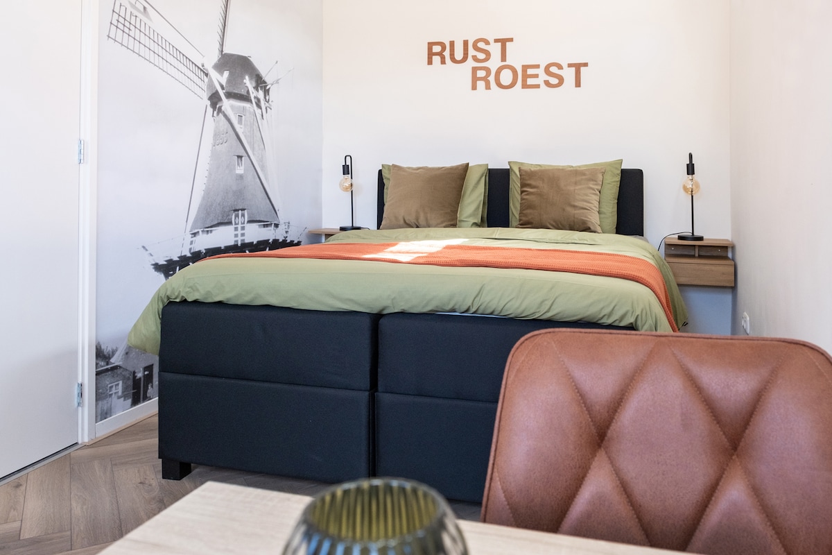這是我們B&B提供的兩間單人房之一: 早餐: 提供餅乾、麵包、奶油和甜點,以及咖啡和茶具。其他用品需自行準備。 注意: - 房間在一樓;廁所在樓下。 - 房間內有洗手台和毛巾;樓下有淋浴間(僅限長期住宿)。 前往格羅寧根的時間(乘坐巴士): - 到格羅寧根大學醫學中心:40 分鐘 - 前往格倫澤尼克(GronZernike):約60分鐘 (開車約20分鐘。)