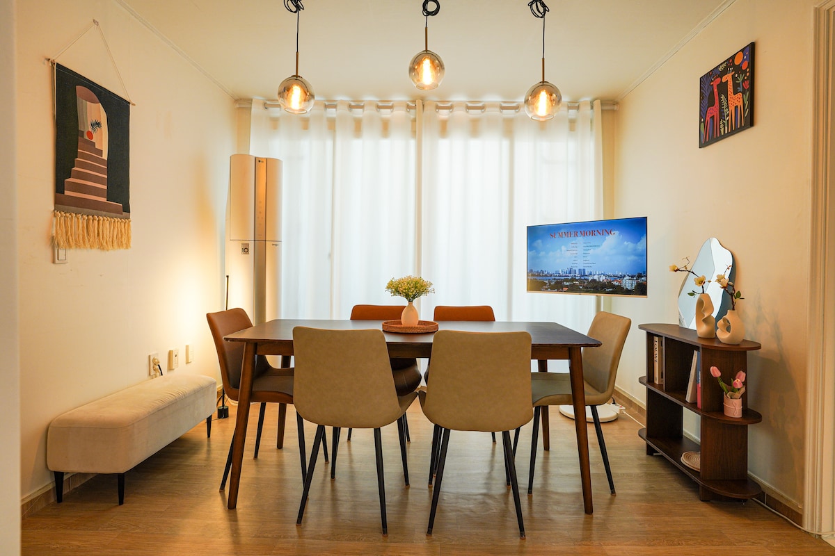 僅需30秒。一樓*舒適*弘大站3間臥室4牀。