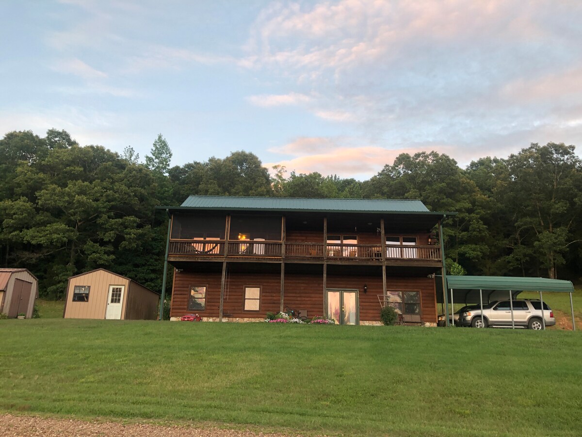 Peaceful Hills Lodge is the perfect place to relax on the front porch while enjoying the fresh air, the sounds of nature, and a pond. Inside is a large stone fireplace, a spiral staircase & a jacuzzi bathtub. Located on 97 acres in a gorgeous location with a spring-fed creek, swimming hole, rope swing, hammock & fire pit. You'll find the spring fed stream is on a private lane that brings you into Peaceful Hills! The Lodge, Cabin & Cottage is where you’ll definitely enjoy some peace & quiet!