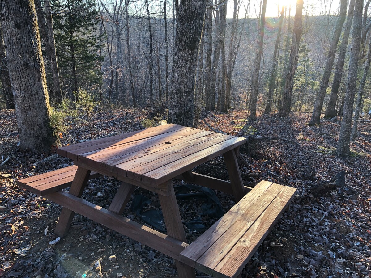 Acorn Oaks feels like its own little world in the forest. It’s one of the larger campsites here at Peaceful Hills Retreat as it has three picnic tables. You will see the gorgeous view into the valley as you camp on the level campsite near the firepit.