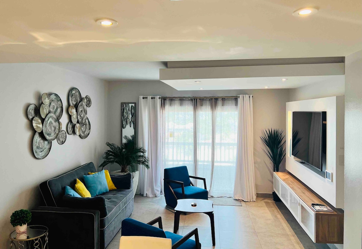 高速網路。開放式豪華公寓,步行即可抵達海灘,靠近市中心、餐廳、藥局、醫院、高爾夫球場、超市。 私人停車場、成人和兒童皮艇,各自配有救生衣、安靜的陽臺,可在「Hamaca」休息。 所有區域均設有空調、洗衣機、烘乾機,供房客使用。輕鬆前往高速公路,距離聖胡安、百加得釀酒廠和地鐵區20分鐘。