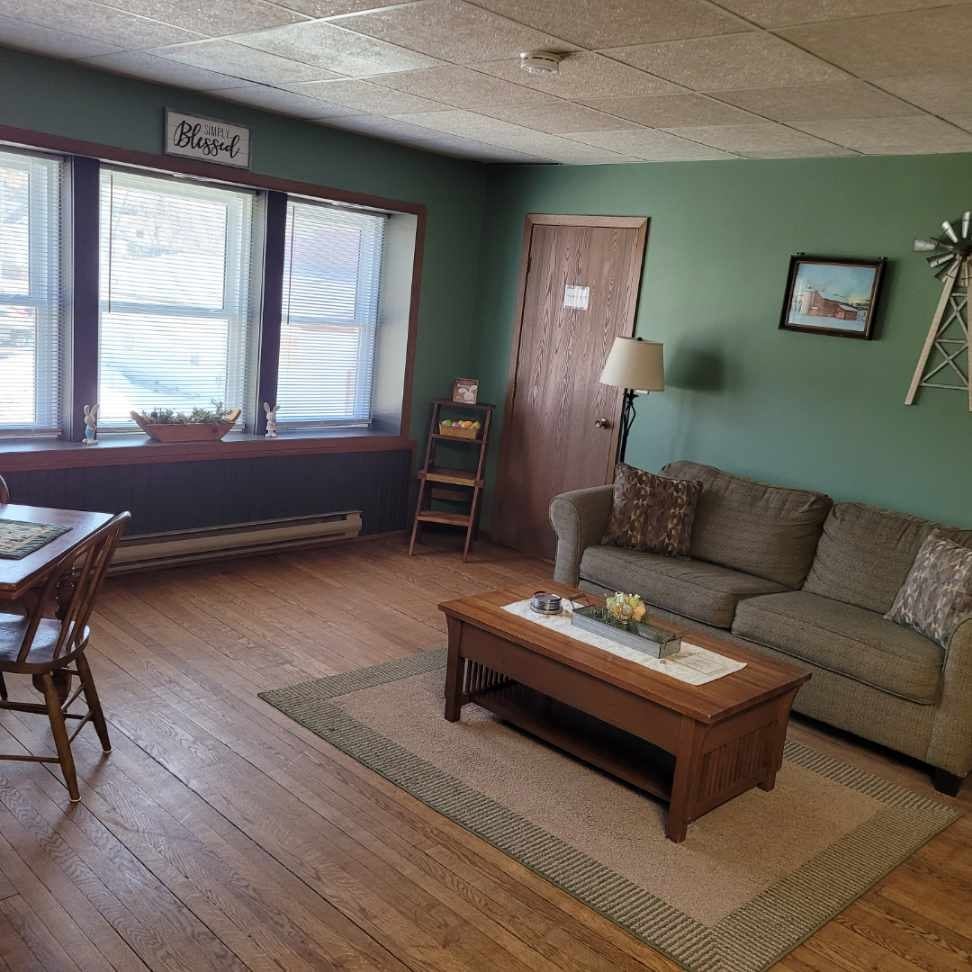 我們在樓上提供私人家具的AirBnB ,可俯瞰Wonewoc的商業區。 一間標準雙人牀臥室、標準雙人沙發牀、開放式廚房、用餐區和配備智慧電視和WIFI的客廳。 蜿蜒河( Winding River )位於400 State Bike Trail的中間,距離威斯康辛戴爾斯( Wisconsin Dells ) 40分鐘路程。 Wonewoc是一個小型的鄉村農業社區,位於Madison和LaCrosse之間風景如畫的33號高速公路上,沿著Baraboo河。