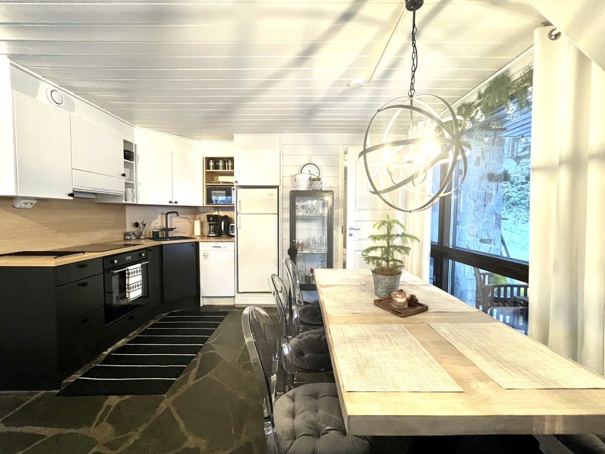 這間半獨立別墅位於一個新的鄉村小屋區域,可供 10 人(9+1)入住,提供優質的住宿體驗。 這個地方非常適合家庭度假、一群朋友和派對空間。 別墅位於Himo的中心,步行即可抵達斜坡、高爾夫球場、商店、Himos Areena、Festari區和西部的Will遊樂中心。 從桑拿蒸汽中,你可以在室外熱水浴缸中浸泡。 不包括按摩浴缸和床單。額外收費: 按摩浴缸:每張訂單 €190。 床單套裝每套 €22。