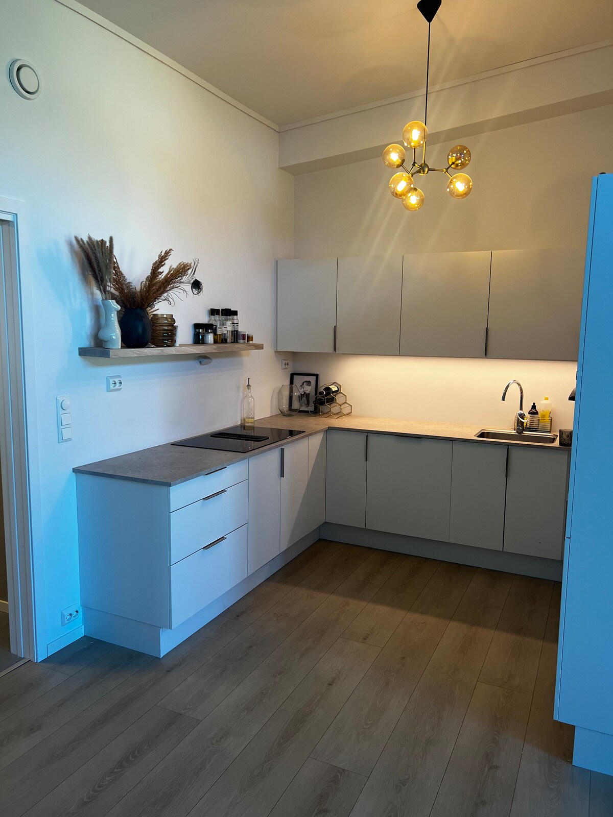 Lys hybel i nytt hus(2018), et soverom, bad med dusj og vaskemaskin! Kjøkkenkrok til å lage mat! Stue med sofa, bord og stol, dobbeltseng og stort skap på soverom. Sovesofa og mulighet for ekstra madrass. Det står en kaffetrakter på kjøkkenet. Barnevennlig leilighet og uteområder. Mulighet til å låne barneseng. Perfekt for enslig/par, med et lite barn . Sovesofa kan slås ut, men er dessverre meget hard. Parkering rett utenfor. Ikke el. Bil lading, men ladestasjoner like i nærheten