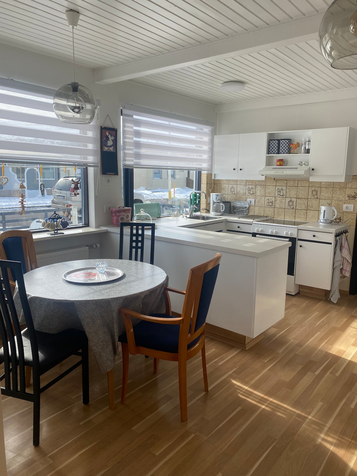 從這個寬敞的開放空間閣樓眺望Eyjafjörður峽灣的山景和海景。享受設備齊全的廚房、2張加大舒適床、配有地暖的浴室和大型開放式用餐/起居區域。它有自己的入口和鑰匙盒,方便入住和退房。