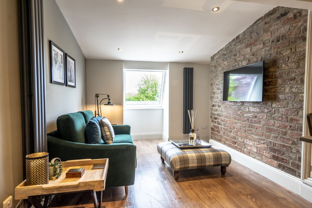 享受我們時尚的1床底層紐約「閣樓」風格空間。 直接位於河邊,是市內少數幾間這樣的公寓之一。 在窗邊座位旁觀看水流,非常接近,您會想伸手去玩! 約克最歷史悠久的工業建築( 1864年) ,非常安靜,但距離市中心5分鐘路程。 優雅的炫酷和舒適融合,原始的19世紀磚砌。 高規格包括QLED電視、加大雙人床和現代石英廚房。 私人擁有/經營。