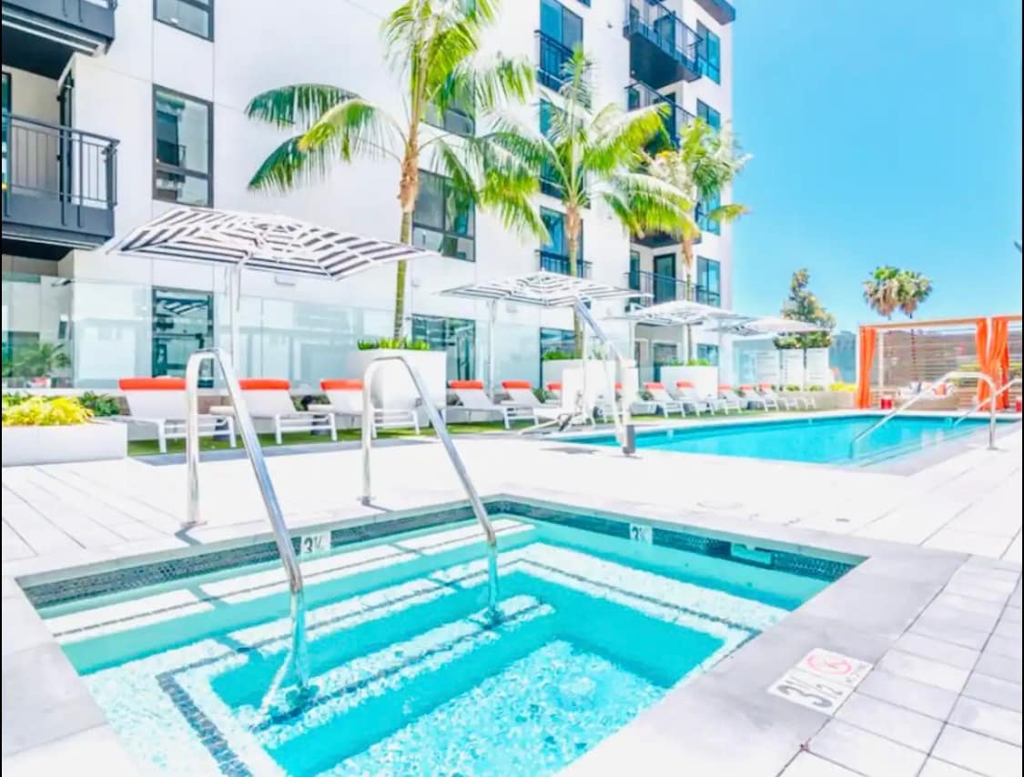 寬敞的公寓,配有加大雙人牀,位於好萊塢,毗鄰W Hotel。 -度假村式戶外泳池和按摩浴缸 -寬敞的步入式衣櫃。 -門禁車庫指定停車位。 -健身房。 全新的加大雙人記憶海濱牀和時尚沙發! 寬敞的淋浴間。 配備免費Netflix的55英寸智慧電視。 設備齊全的全新廚房,配有洗碗機。 每次入住前,都會進行專業深度清潔和消毒!