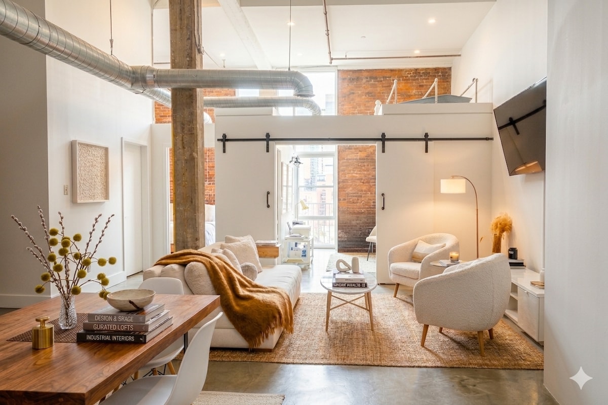 入住這間位於西中城( West Midtown )的全面翻修雙層閣樓,體驗奢華和創意。 這個空間配有高天花板、現代裝飾和獨一無二的定制作品,包括手工製作的酒吧和牀,融合了舒適和優雅。 在壁爐旁放鬆身心,欣賞令人嘆為觀止的美景,享受水療般的浴室、設備齊全的廚房和令人驚嘆的城市景觀。 步行即可抵達頂級餐廳、商店和夜生活場所-距離亞特蘭大機場僅20分鐘路程。 非常適合商務旅客、情侶和創意人士!
