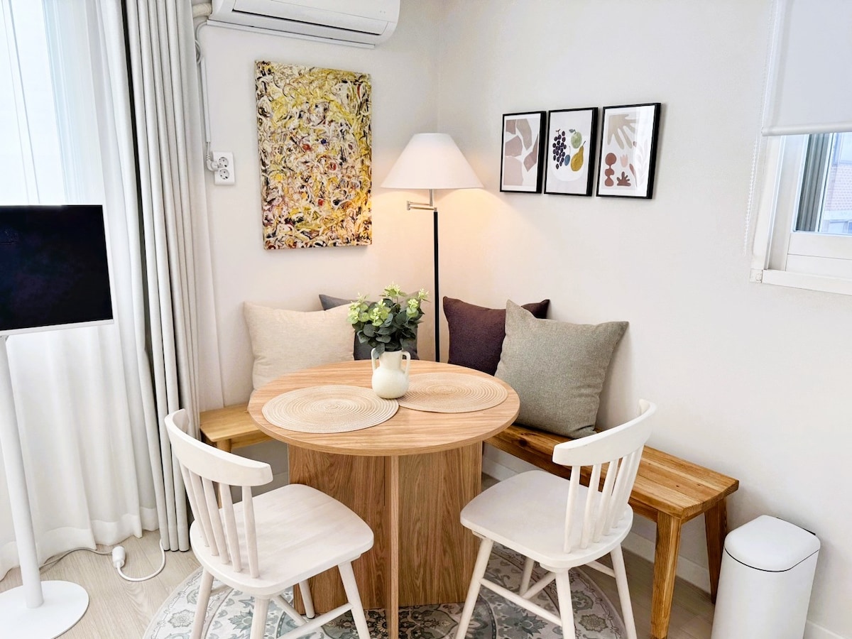 홍대 쇼핑거리 1분|조용하고 예쁜 감성 숙소|9층·엘리베이터