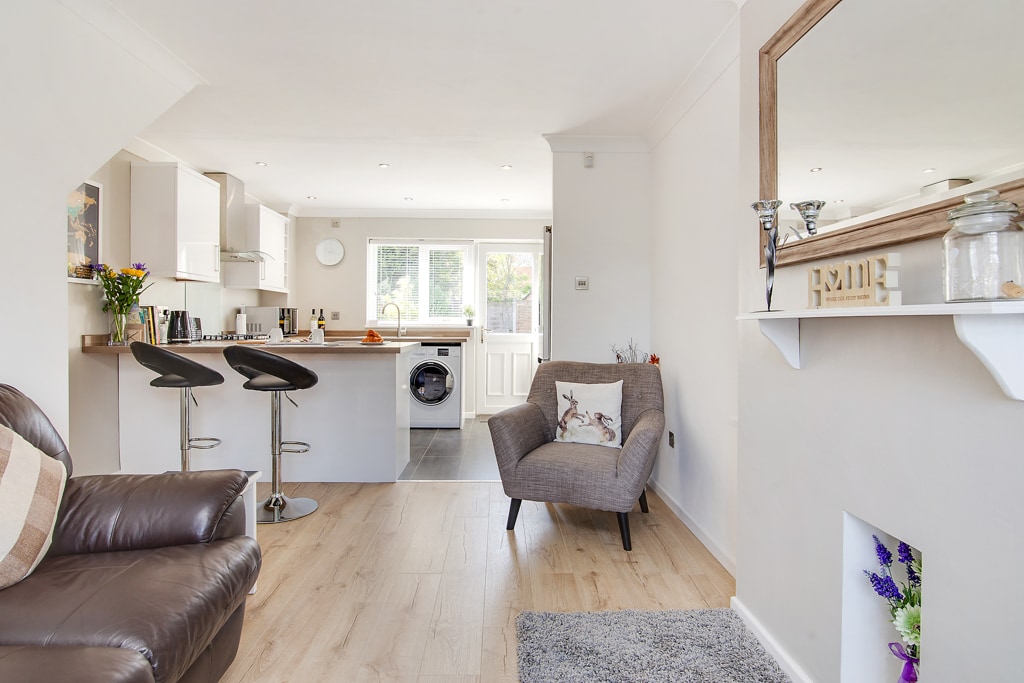 Our dog friendly, modern two bedroomed bungalow (next door to our family home) is situated on a country road. Two large bedrooms, one with an en-suite, one large bathroom. Large light open plan dining/living room with french doors onto the south facing, pet safe garden, equipped with patio area with seating. The kitchen has oven, hob, dishwasher, microwave and fridge. There is a washing machine and sink in the utility. Three car park spaces.