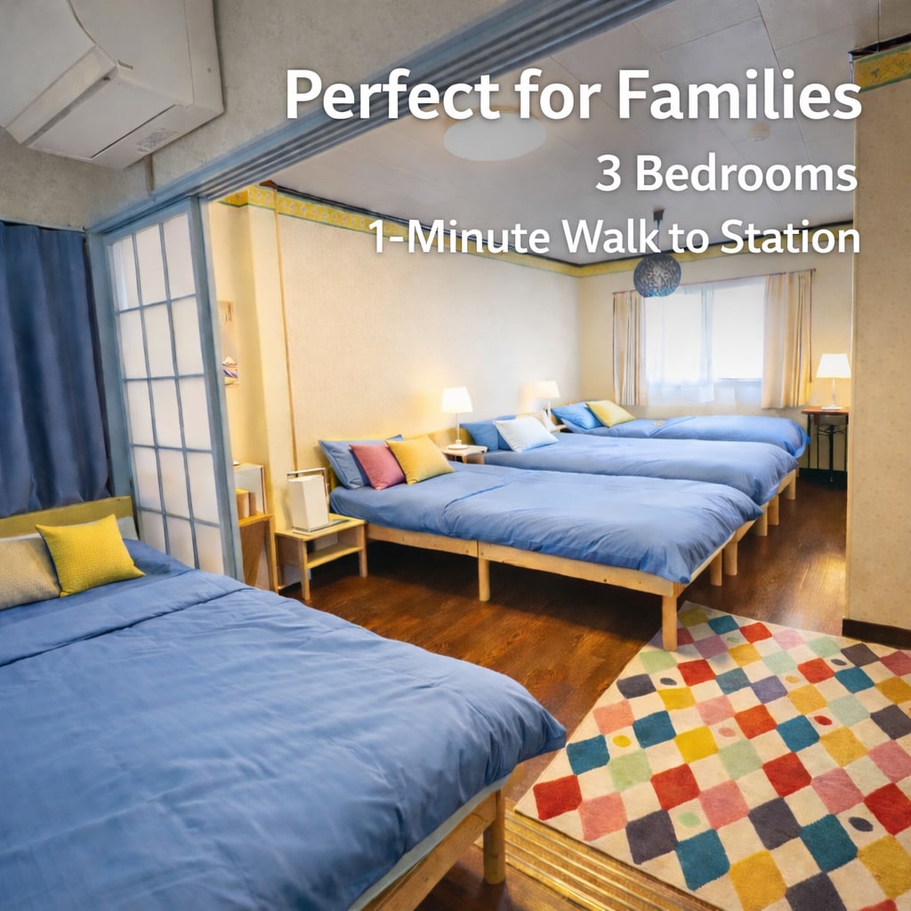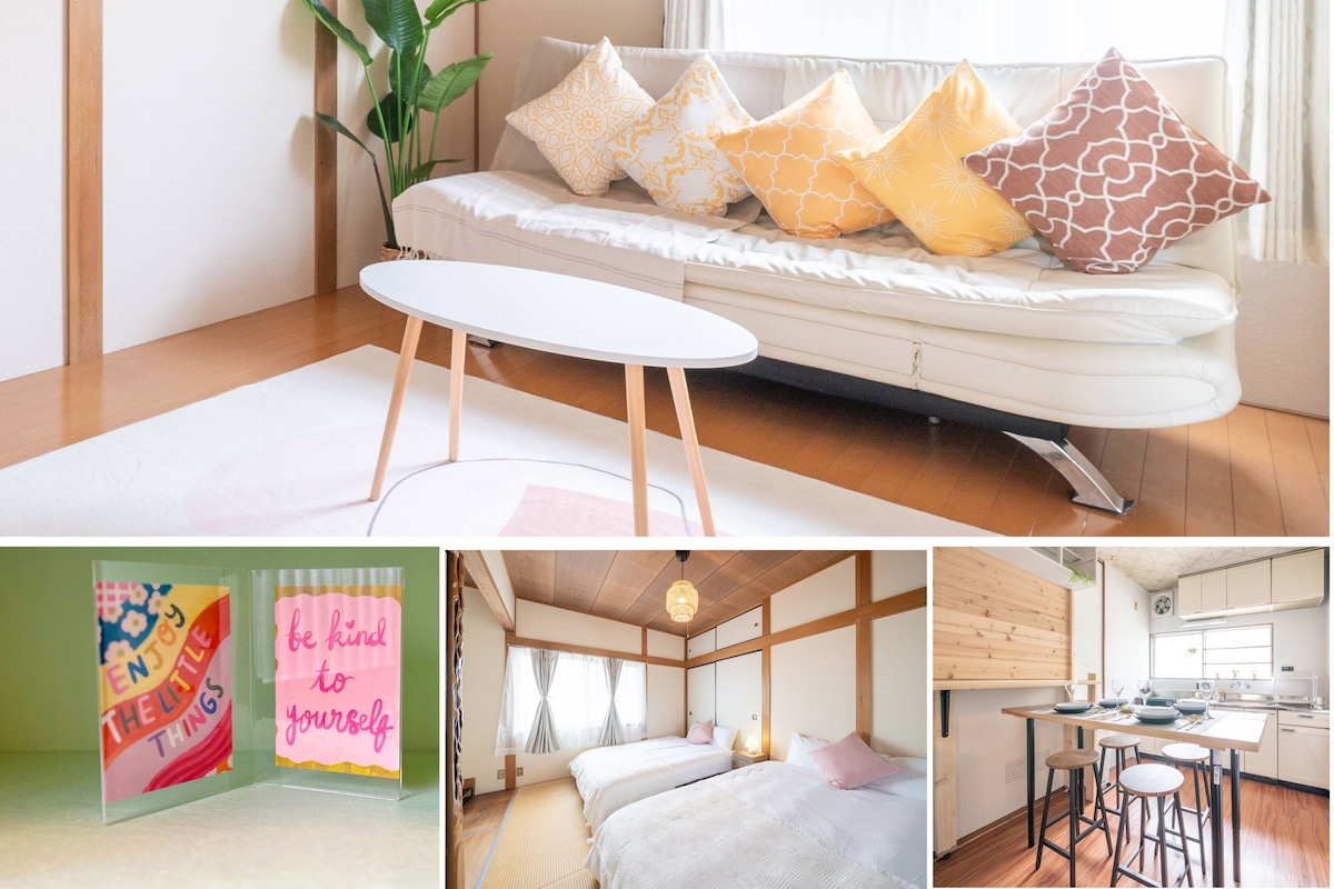 感谢您的查看! 我们的房源距离南海本线住吉大社站步行4分钟,交通非常便利,关西机场、难波、心斎桥和梅田等主要景点都能轻松到达,非常适合旅游或商务出行。 您将享有一栋80㎡的2LDK房屋,完全独立,设施齐全。住吉大社和住吉公园等大阪著名景点步行几分钟可达,是旅游的理想选择。我们还提供两辆免费的自行车,可以用来探索周边区域。 对于有小孩的家庭,我们提供婴儿床、高脚椅和婴儿车等婴儿用品(如需使用,请提前告知我们)。 交通信息 • 难波:10分钟 • 天下茶屋:5分钟 • 梅田:25分钟 • 关西机场:约40分钟 周边信息 • 超市:步行3分钟 • 住吉大社:步行4分钟 • 附近有许多餐厅、咖啡馆和居酒屋 此房源仅为一组客人独享,保证您的隐私和舒适。非常适合与家人或亲朋好友共享宁静时光。丰富的婴儿用品也非常适合带小孩的家庭。 在我们的舒适房屋里享受您在大阪的美好时光吧!