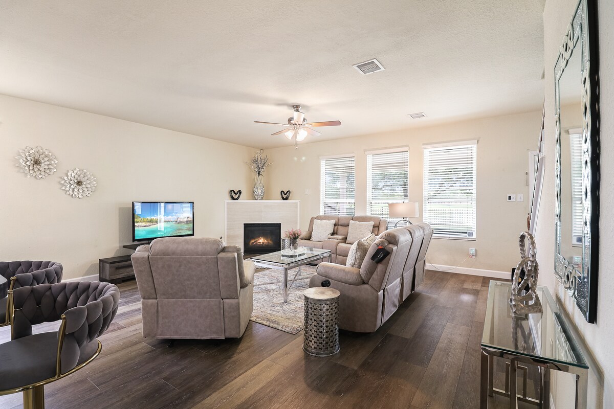 Welcome to your luxury 4-bedroom retreat! Enjoy a heated pool, private home theater and spacious living area perfect for families or groups. 4 plush bedrooms & 3.5 baths Fully equipped chef’s kitchen Fast Wi-Fi & dedicated workspace Backyard seating and grill Minutes to dining, shopping and major highways—yet tucked in a quiet neighborhood for restful nights. Book now to secure your dates and start planning an unforgettable stay!