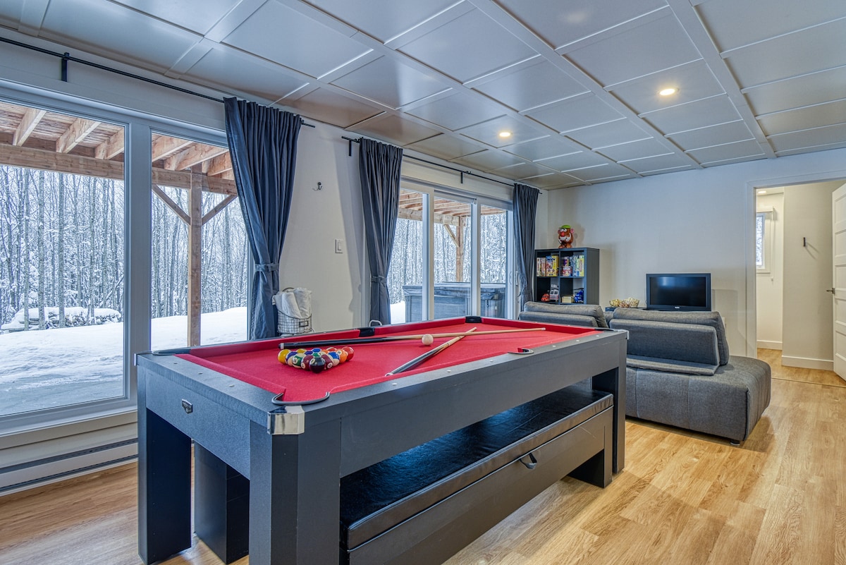 入住這間坐落在森林中心的現代化度假木屋,享受大自然的舒適效果。 無論季節如何, Tremblant都很漂亮。 這是一個夢幻般的戶外目的地,距離勃朗峯8分鐘路程,距離蒙特布朗20分鐘路程。 無論是徒步旅行、越野滑雪、雪鞋運動還是雪地摩託車,四面八方都可以輕鬆前往步道。 更不用說著名的P 'tit Train du Nord ,開車3分鐘即可抵達。
