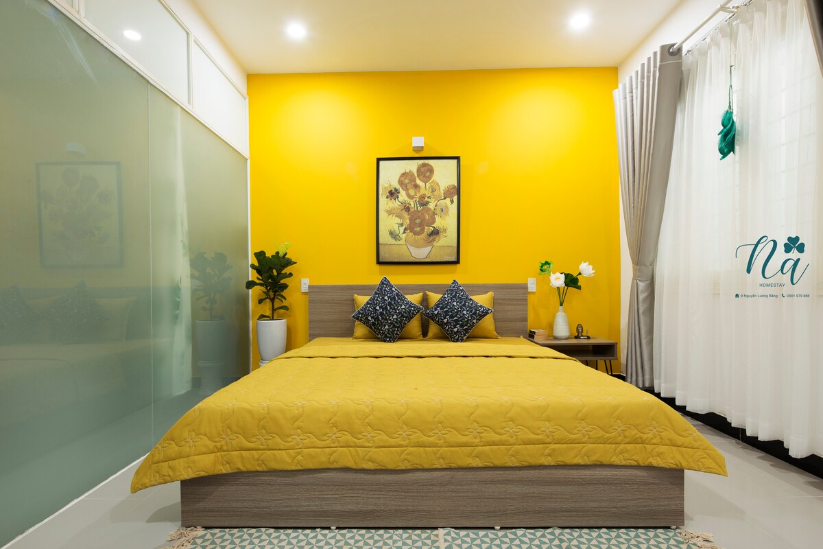 Na寄宿家庭和咖啡是位於順化市中心的可愛聯排別墅。 這是這棟房子「為了儲蓄」,這幾位過時的建築師希望為他們的第二個女兒安娜保留。 Na是將舊城鎮房屋翻修成現代民宿的靈感來源,具有生動的色彩。 主導色調是溫暖的顏色,靈感來自Vincent Vangoh和他的藝術品。 每個房間呈現一種主要的顏色,風格裝飾(例如:毯子、枕頭、窗簾套裝)與房間的背景相匹配。