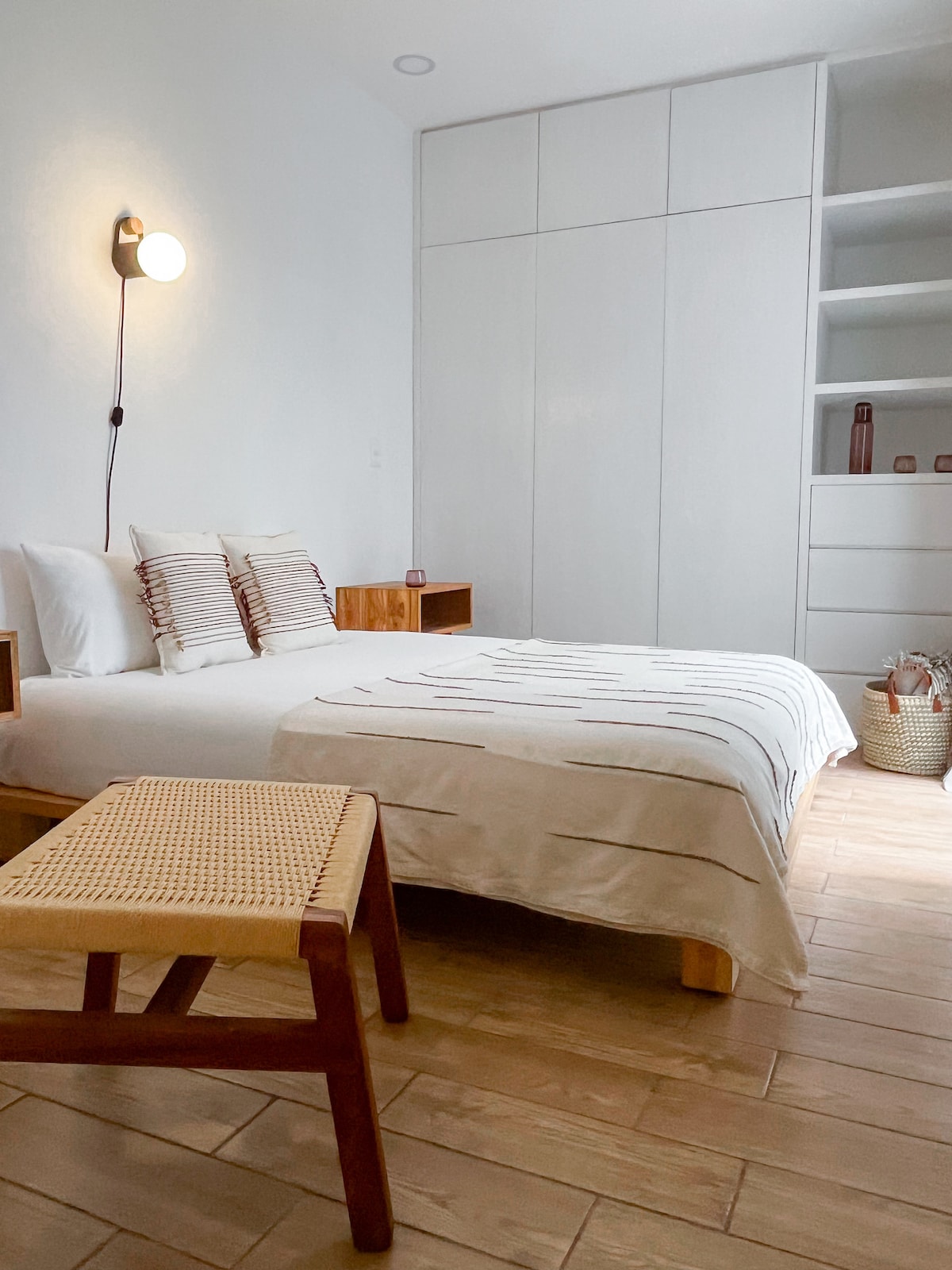 Dos habitaciones con baño propio y muy buena luz (una con cama Queen y otra King). Una terraza única con buenas vistas y llena de plantas para estar cómodos. Dos espacios para poder trabajar y muy buena conexión a Internet. Espacio con estilo único, diseñados con mucho cariño para que la estancia sea irrepetible y uno se encuentre como en casa. Podrán ver que no televisión. Queremos que cada habitación tenga su intimidad y al mismo tiempo los espacios compartidos sean muy acogedores.
