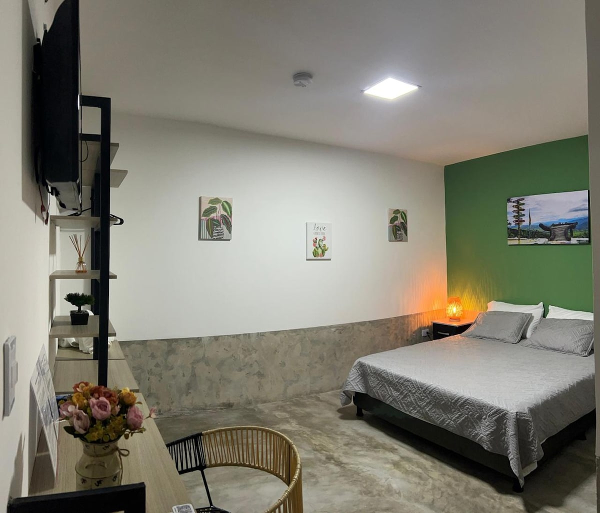 寬敞的房間配有 1 張雙人床、床單、空調、400mb 光纖網路、電視、衣櫃、冰箱、獨立浴室、熱水、毛巾以及沐浴露和洗手液。 位於卡利最獨特的區域。靠近最好的玫瑰區,如 El Peñon、San Antonio 和 Granada。靠近動物園、El Gato de Tejada 和 Boulevard del Rio 等旅遊景點。