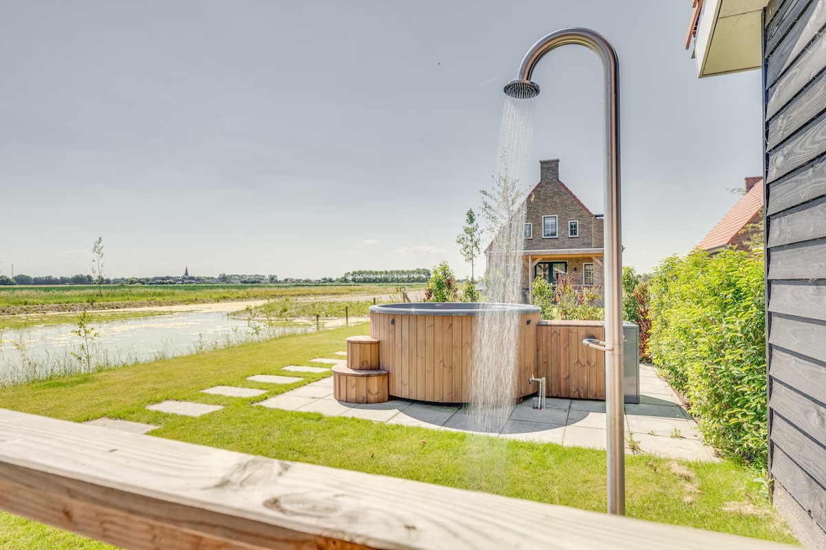 鄉村木製度假屋,配有寬敞的開放式廚房、休息區、浴室和臥室。 溫馨舒適是這間度假屋的吸引力。 燃木爐、戶外爐和室外淋浴間,在清晨的陽光下。 俯瞰無盡、風景優美的中世紀Zeeland-Flemish polderland的壯麗景色。 房子位於半英畝的公園式景觀花園中。 免費WiFi。非常適合數位排毒。