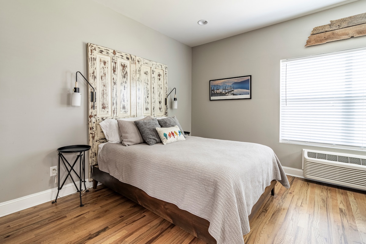 歡迎來到查塔努加市中心!這間時尚的單間公寓提供舒適的居家空間和五星級飯店的感覺!⭐️您會發現一張加大雙人床,讓您享受應得的休息、高速網路、專屬工作空間和全套廚房,配有無限咖啡和小吃吧,為未來的一天做好準備。我們有沒有提到,步行即可抵達我們迷人的城市的所有當地熱門景點!立即預訂-我們很樂意讓您入住!!!