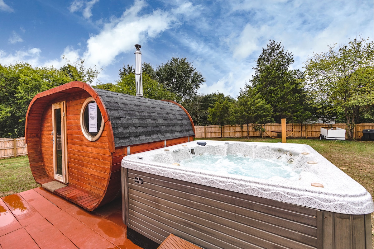 StayInOurSpace 獨特的樹屋坐落在樹林之中,是一個令人難忘的度假勝地。這個度假屋提供舒適的生活空間,裝潢時尚,還有令人放鬆的露台,讓你沉浸在大自然中。享受按摩浴池的溫暖和泡泡,在吊床上搖擺,或聚在迷人的火坑旁享用棉花糖夾心餅乾,並進行真誠的交談。這棟樹屋的每個細節都經過精心設計,是創造回憶的完美空間。 按✔ 摩浴池 ✔ 火坑 ✔ 吊床 歡迎在下方了解詳情!