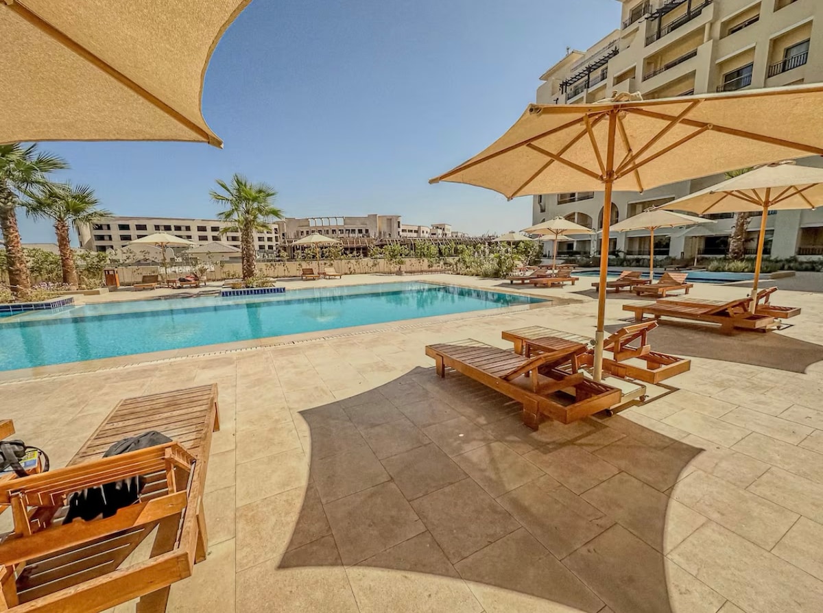 這個時尚的地方靠近必看景點。 靠近所有海灘-位於赫爾哈達市中心,乞求Al mamsha長廊 非常時尚、舒適和乾淨 *客房清潔 *遊泳池 * 24小時保安 *兒童區 *地下停車 *有門禁的社區