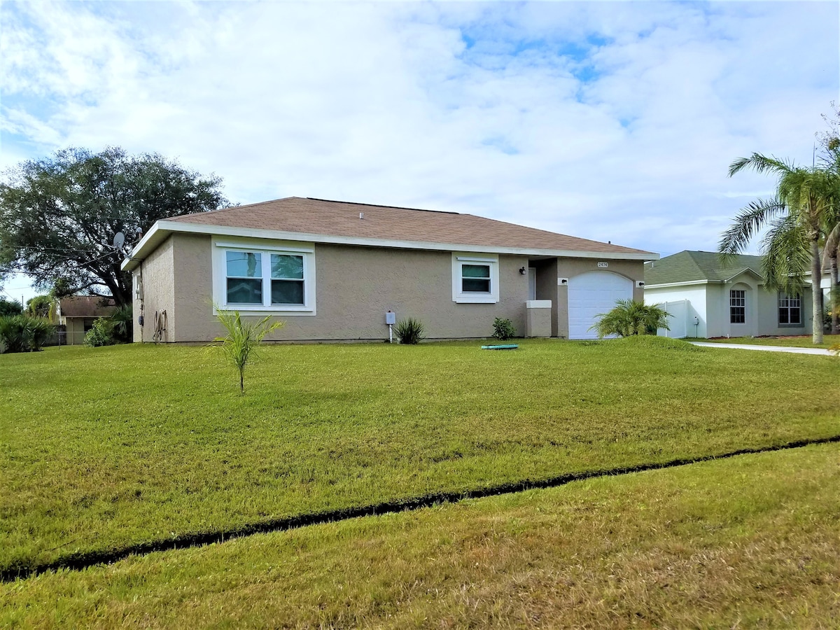 歡迎來到我們位於聖露西亞港的Sunshine Haven Guesthouse。我們舒適的1間臥室度假屋是完美的放鬆度假勝地。我們的客用住房提供舒適的私人空間,靠近The Savanah和Jensen Beach。明亮、通風的室內設有現代化的設備、小廚房和豪華的雙人床。走到外面,享受花園、壁爐或在遮陽傘下享用早餐。距離Jensen Beach Mall、Walmart、Publix和餐廳不遠。入住我們的房源吧!