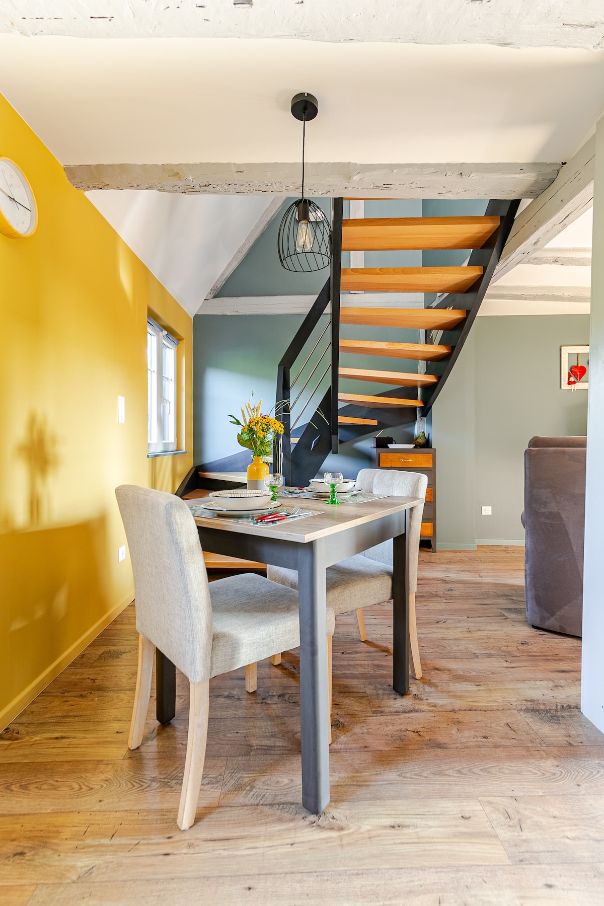 我們改造的煙草烘乾機改造成一個家。 它有一間臥室在一樓,有兩張單人床,一間有空調的臥室,樓上有一張雙人床,還有一間閣樓,有兩張單人床。 享受舒適明亮的空間,設有設備齊全的開放式廚房。 我們的村莊位於斯特拉斯堡和科爾馬之間,靠近德國,距離歐洲公園、許多亞爾薩斯聖誕市場和上科尼斯堡10分鐘路程。