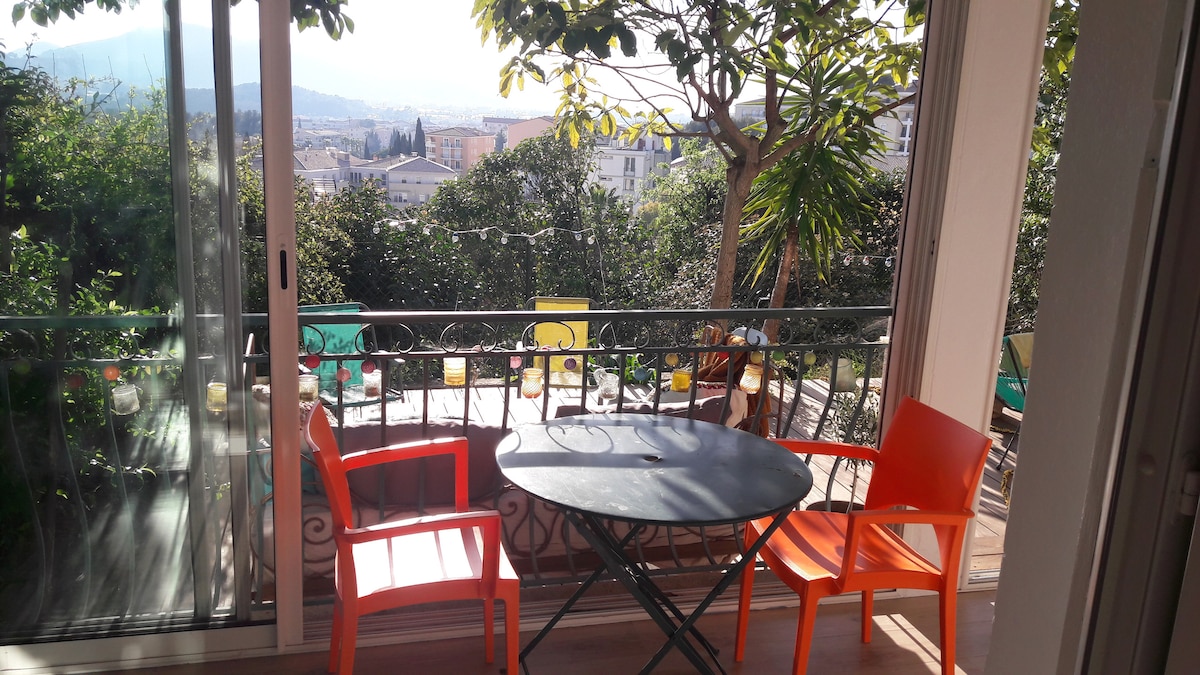安靜且位於市中心的住宿,步行 8 分鐘即可抵達市中心。開車 10 分鐘即可抵達海灘。有公共停車場。三房公寓,但我只出租一間臥室,因為我關閉了第二間臥室的出入口。網路連線良好,但沒有電視。公寓色彩繽紛!在頂樓的鰐梨樹蔭下的露臺上,有一個開胃酒和早餐區