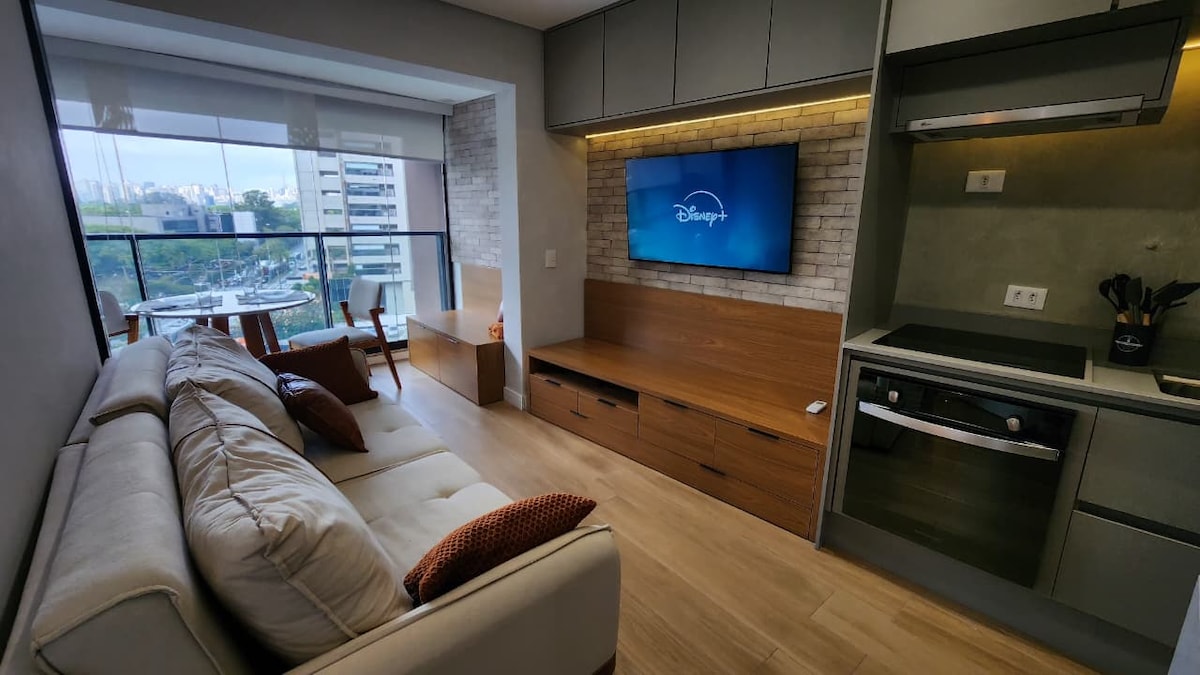 Esse local foi pensado em todos os detalhes para transformar sua experiência de estadia em algo especial. O apartamento é completo, tem excelente cama e chuveiro, está equipado com Alexa e iluminação automatizada. O Edifício recém construído, possui espaço Coworking amplo, Academia completa e Piscina no Rooftop ambas com vista para o Parque do Ibirapuera. Lavanderia administrada pela empresa Dry Clean, Quadra de Squash, Sauna Seca e bicicletário também estão disponíveis para os hóspedes.