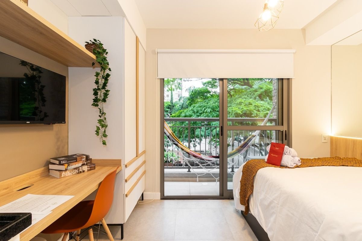 Excelente Localização Região Nobre e Descolada Situado a poucos metros da renomada R. Oscar Freire e do sofisticado CJ Shops, cercado pelo que há de melhor na cidade: os mais aclamados restaurantes, bares, farmácias, salões de beleza e parques . Desfrute de uma vista livre, com um toque de verde que traz serenidade ao seu dia. A rua é reconhecida por ser segura e tranquila, garantindo sua comodidade e paz. *WI-FI de alta velocidade e acesso a NETFLIX. •Importante: Não somos um hotel