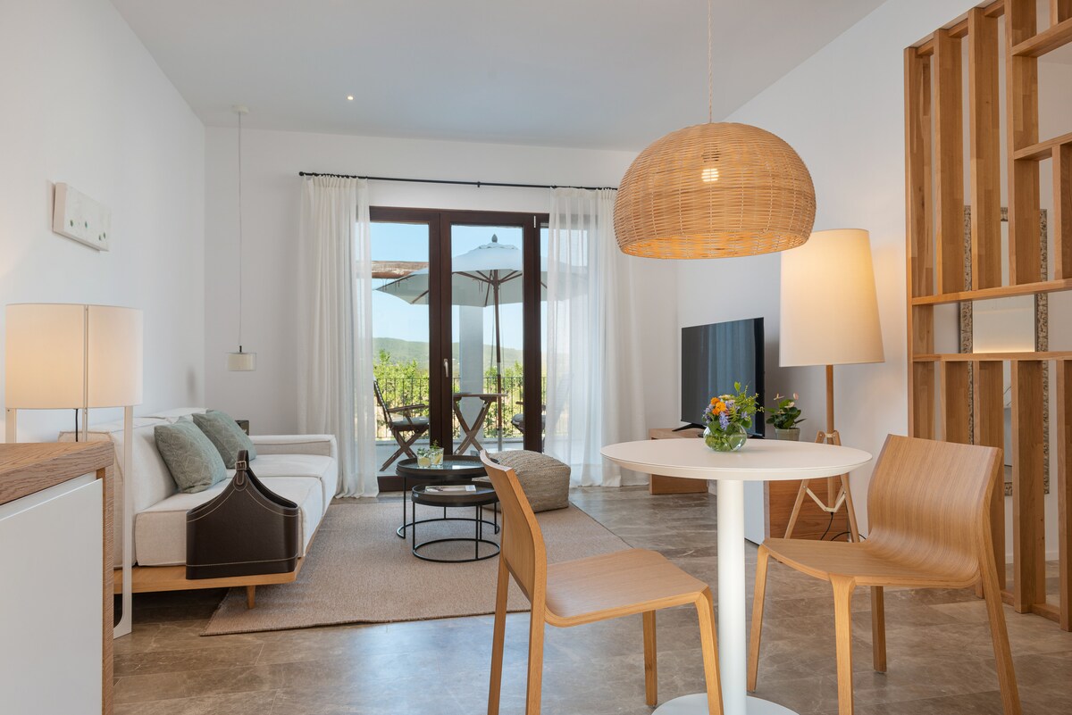 Spacious and stylish! A 27 m² studio designed for those seeking comfort and a modern touch during their Ibiza getaway. ✨ Open-plan living: Perfect for up to 4 guests, offering a bright and airy atmosphere. 💤 Premium sleep: Features a high-quality King Size bed (180x200 cm) or Queen (160x200 cm) and a cozy sofa bed. ☀️ Private Balcony: Enjoy your own outdoor space, perfect for relaxing in the Mediterranean breeze. 🌿 Modern Vibe: The ultimate sanctuary for friends or small families.