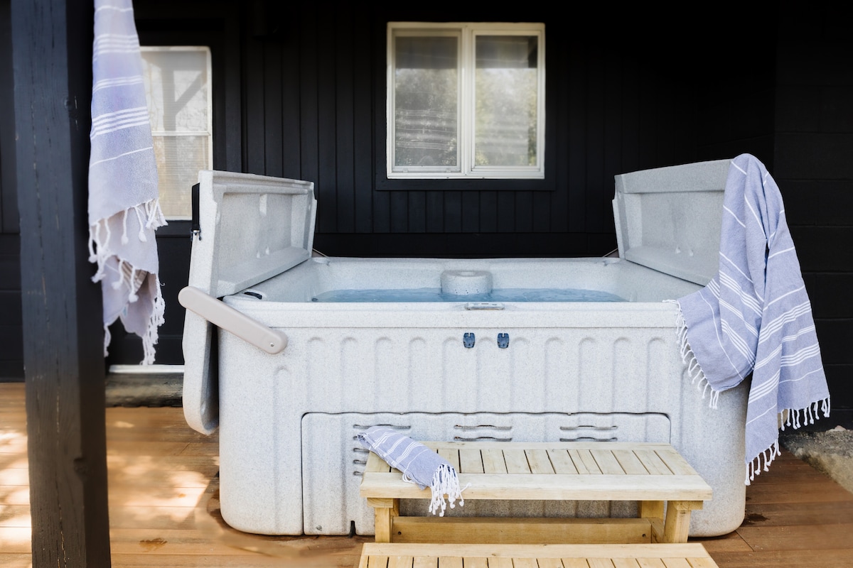 歡迎來到Wander Wild。現代與鄉村山脈相遇,坐落在私人道路上的樹林中。非常適合尋找寧靜度假勝地的小家庭、情侶和朋友。質樸的魅力,有許多現代化的更新,包括翻新的廚房、新家具、電動車充電器和高速WiFi (如果您無法拔下電源)。甲板上的內置雪松熱水浴缸是觀星的完美地點。地理位置優越,距離市中心只有5分鐘車程,步行即可抵達徒步道。找到完美的住宿。