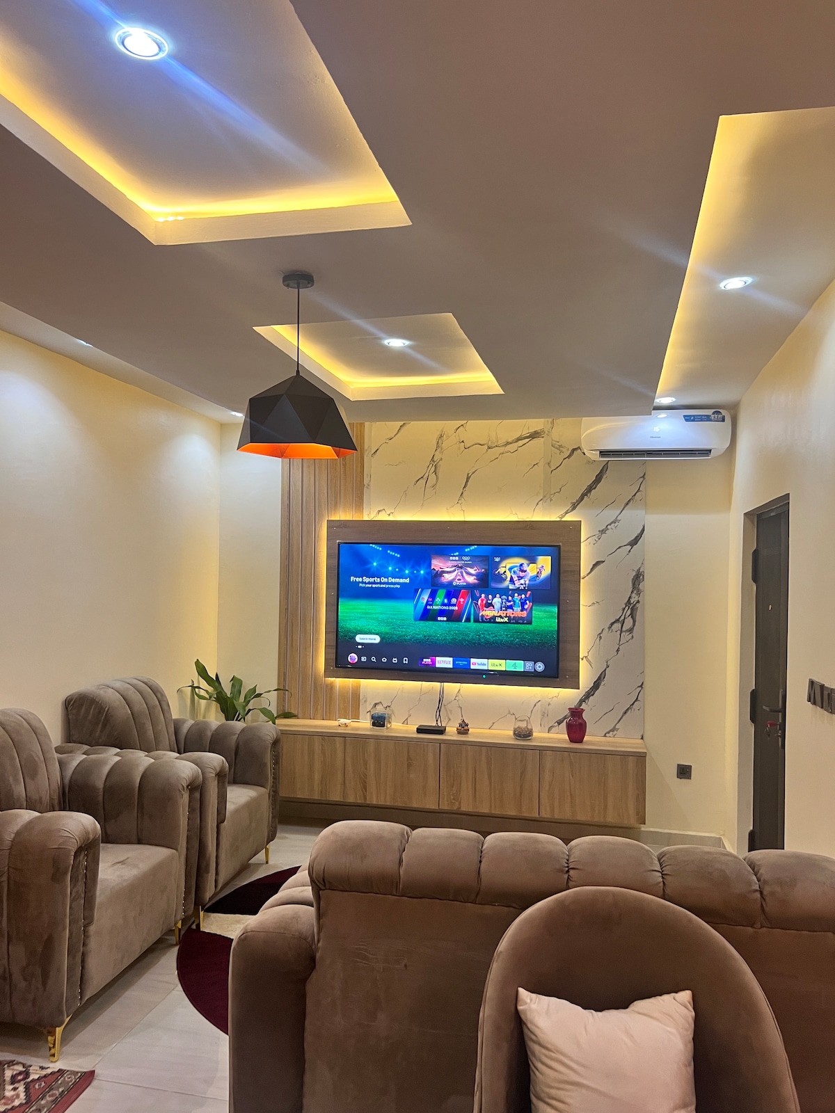 歡迎來到這間時尚且設計精心的公寓,非常適合欣賞舒適、溫暖和現代美學的客人。 這個空間以大地色調、自然紋理和令人平靜的綠色裝飾為主題,營造出溫馨而高級的氛圍。 總體而言,這間公寓非常適合獨自旅客或情侶,尋找一個安靜、時尚的度假勝地,擁有現代非洲風格的設計,非常適合商務差旅、短途旅行或長期住宿 .