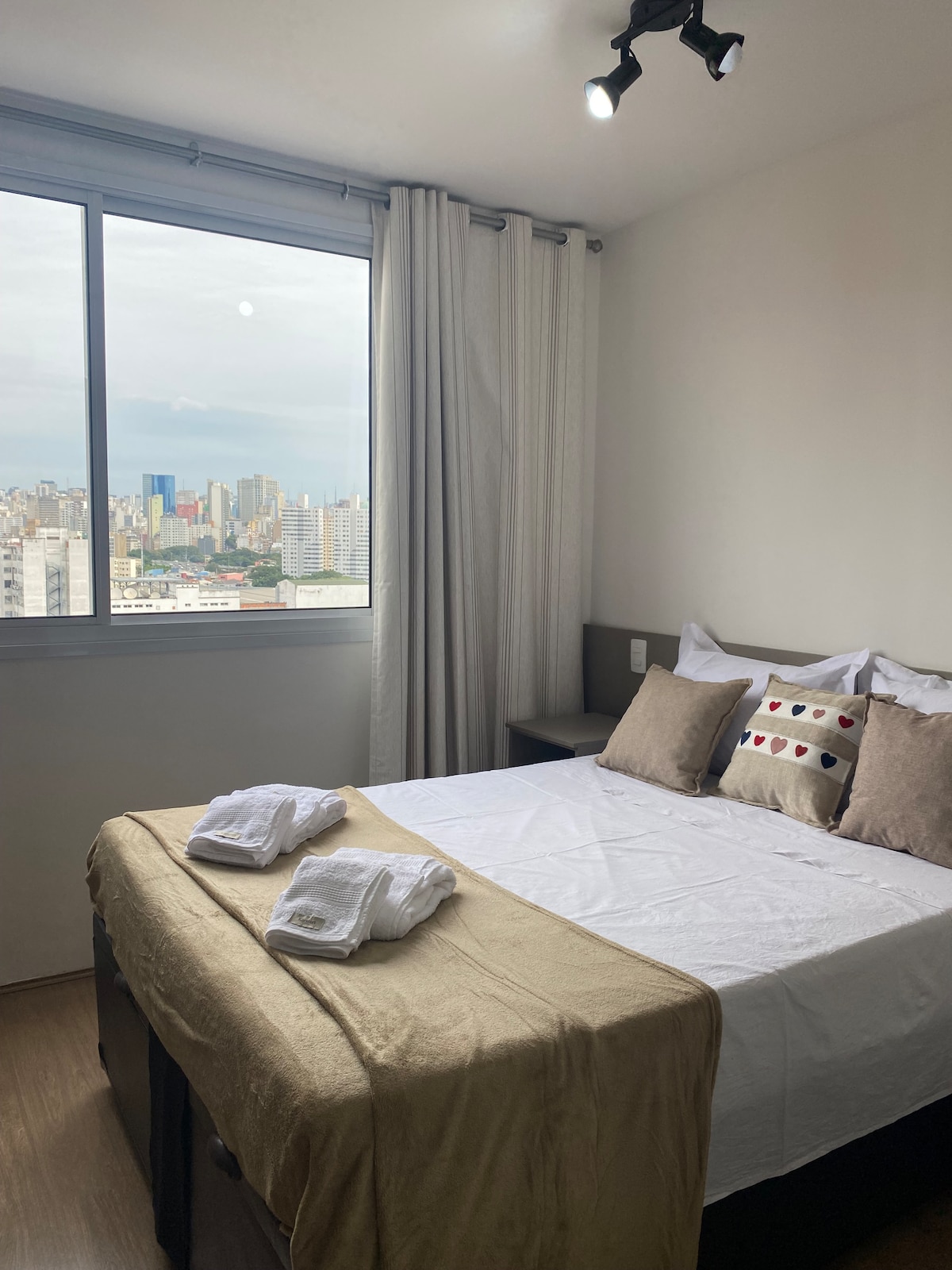 該單間公寓位於市中心最高建築的31樓,擁有現代化和溫馨的設計,以及令人印象深刻的城市景觀。 從窗戶可以欣賞到Anhangabaú Valley、歷史中心、Av的天線。 保利斯塔:聖保羅最美麗的景觀之一 這是SampaSky所在的大樓,步行即可抵達市中心的主要景點。 配有空調、55吋電視(可應用程式)、配備基本餐具的廚房、爐臺( 1口)、微波爐和迷你吧。