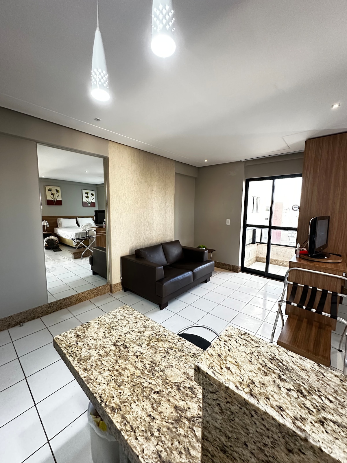 Lugar especial, perto de tudo. Flat novo, muito bem decorado, com TV (Netflix), ar condicionado, cama de casal queen, sofá cama de casal, roupas de cama e banho limpas e macias, máquina de lavar/secar roupas, geladeira, purificador refrigerado de água, cooktop, sacada com vista incrível, 1 vaga de garagem. Prédio é de alto padrão. Piscina borda infinita, vista panorâmica e aquecida, hidromassagens, academia e sauna na cobertura - 40 andar. Espaços temáticos, lavanderia, quadra squash, jardim.