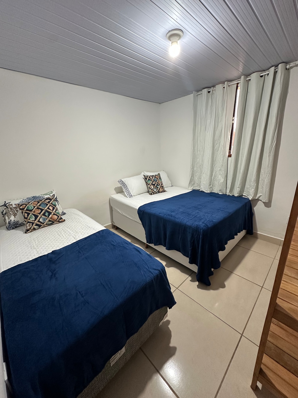 Casa aconchegante , muito ampla, novinha. O imóvel conta com 2 banheiros, 2 quartos, sendo 1 suíte. TODOS COM AR CONDICIONADO SPLIT, Existem ainda 2 colchões de solteiro. Sala ampla com TV de 55 poleg. TV a CABO - INTERNET WI-FI. Cozinha equipada com todos os utensílios. Móveis e eletrodomésticos novos, além de forno de microondas, cafeteira, liquidificador, grill, air fryer, fogão de 6 bocas, lixeira de pia embutida, espremedor e purificador de água. NÃO FORNECEMOS ROUPA DE CAMA OU BANHO.