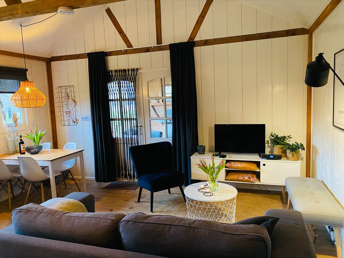 歡迎來到我們獨一無二的微型住宅,隱藏在迷人的弗里斯村諾德沃爾德邊緣的私人森林中。這個現代化的住宿是尋求安寧與自然愛好者的理想選擇。 在夏天,您可以在寬敞的私人花園中享受座位區、陽台和樹間的吊床。 在冬天,您可以坐在室內的木柴爐旁,它可以在短時間內為房間加熱。 微型住宅雖然小巧,但設備齊全!